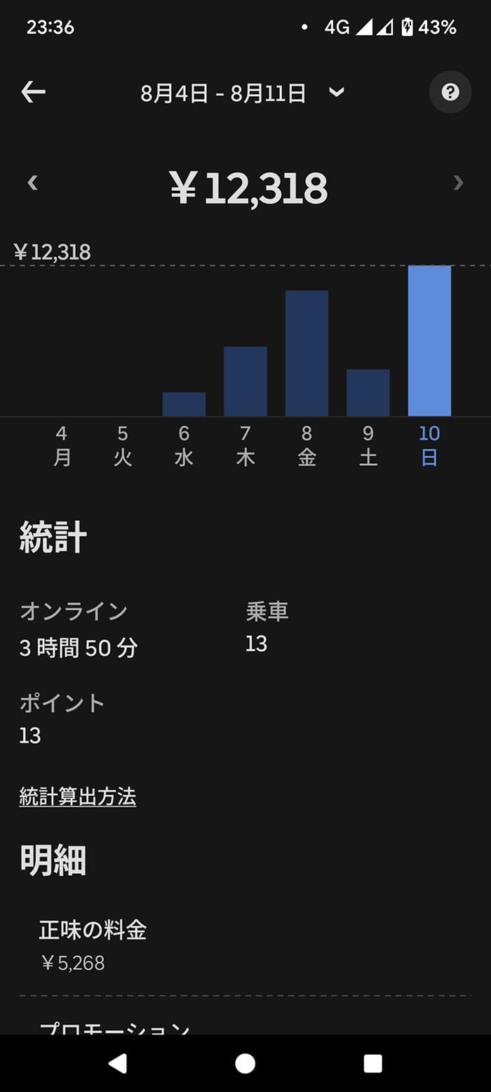 ウーバーって悪天候インセンティブが出るときと出ないときの差が激しいから、こういう日は体力と安全優先で切り上げるのもアリだと思う。